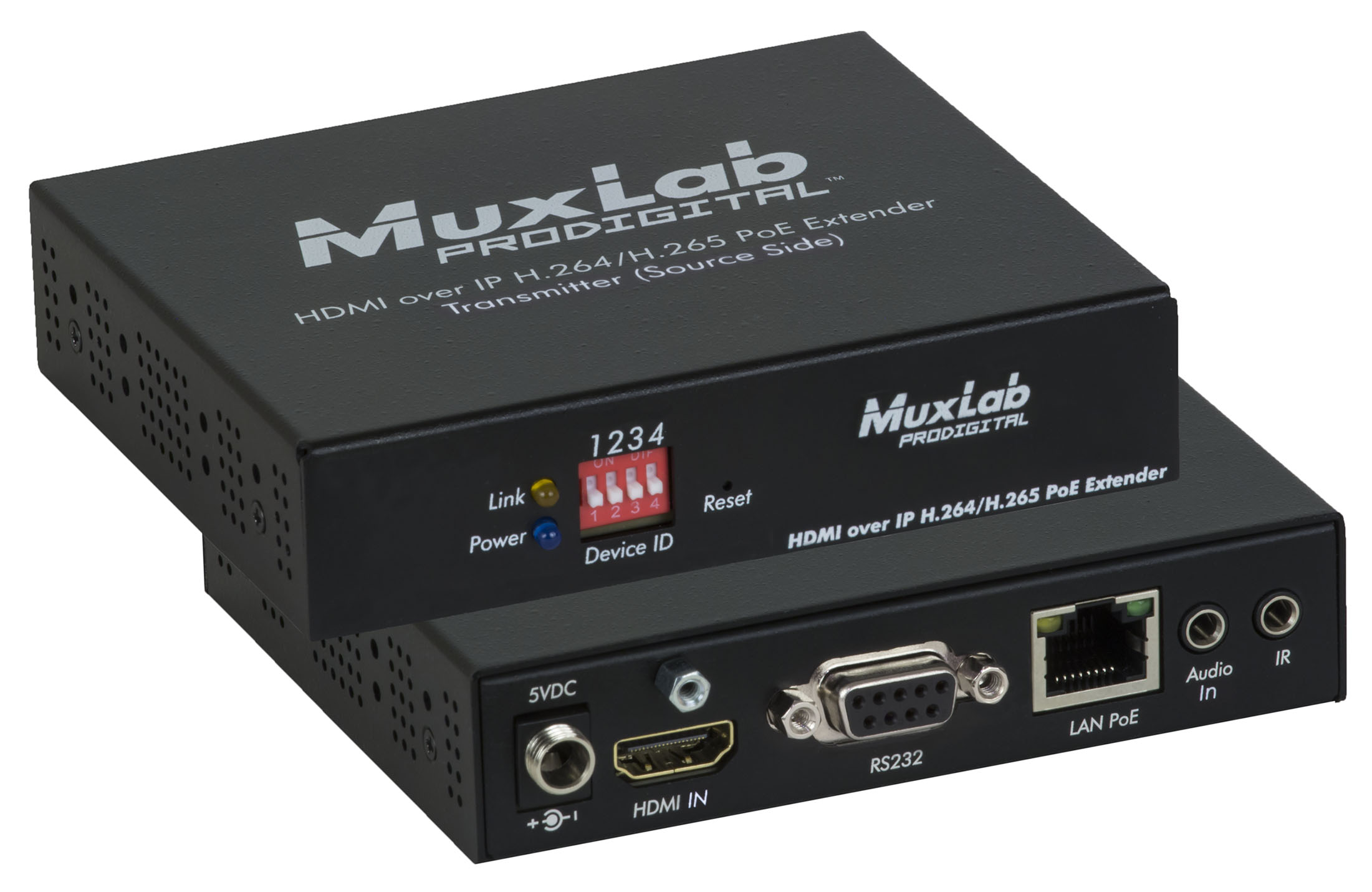 La combinaison HDMI sur IP H.264/H.265 PoE Extender Transmitter and Receiver permet d’étendre localement les équipements HDMI source et affichage jusqu’à 330ft (100 m) à une résolution allant jusqu’à 4K @ 60Hz via un câble Cat5e/6 dans des configurations point-à-point, point-à-multipoint et multipoint-à-multipoint via un réseau Ethernet local, et prend en charge les capacités Video Wall et Multiview dans une bande passante faible, flexible, extensible et économique, sans avoir besoin d’installer des systèmes de câblage dédiés. Les exigences exceptionnellement faibles en bande passante de cette combinaison d’appareils permettent de diffuser du contenu audio/vidéo sur un réseau local, via WiFi et sur Internet pour des installations distribuées réparties à travers le monde. L’émetteur accepte une vidéo 1080p @ 60Hz et diffuse le contenu vers le récepteur, où le signal est redimensionné jusqu’à 4K @ 60Hz pour être affiché sur un moniteur 4K. Le récepteur accepte également les flux vidéo H.264/H.265 provenant d’autres dispositifs d’émission allant jusqu’à 4K @ 60Hz. Ces appareils prennent en charge le PoE () et peuvent être alimentés par un commutateur Ethernet PoE (PSE).