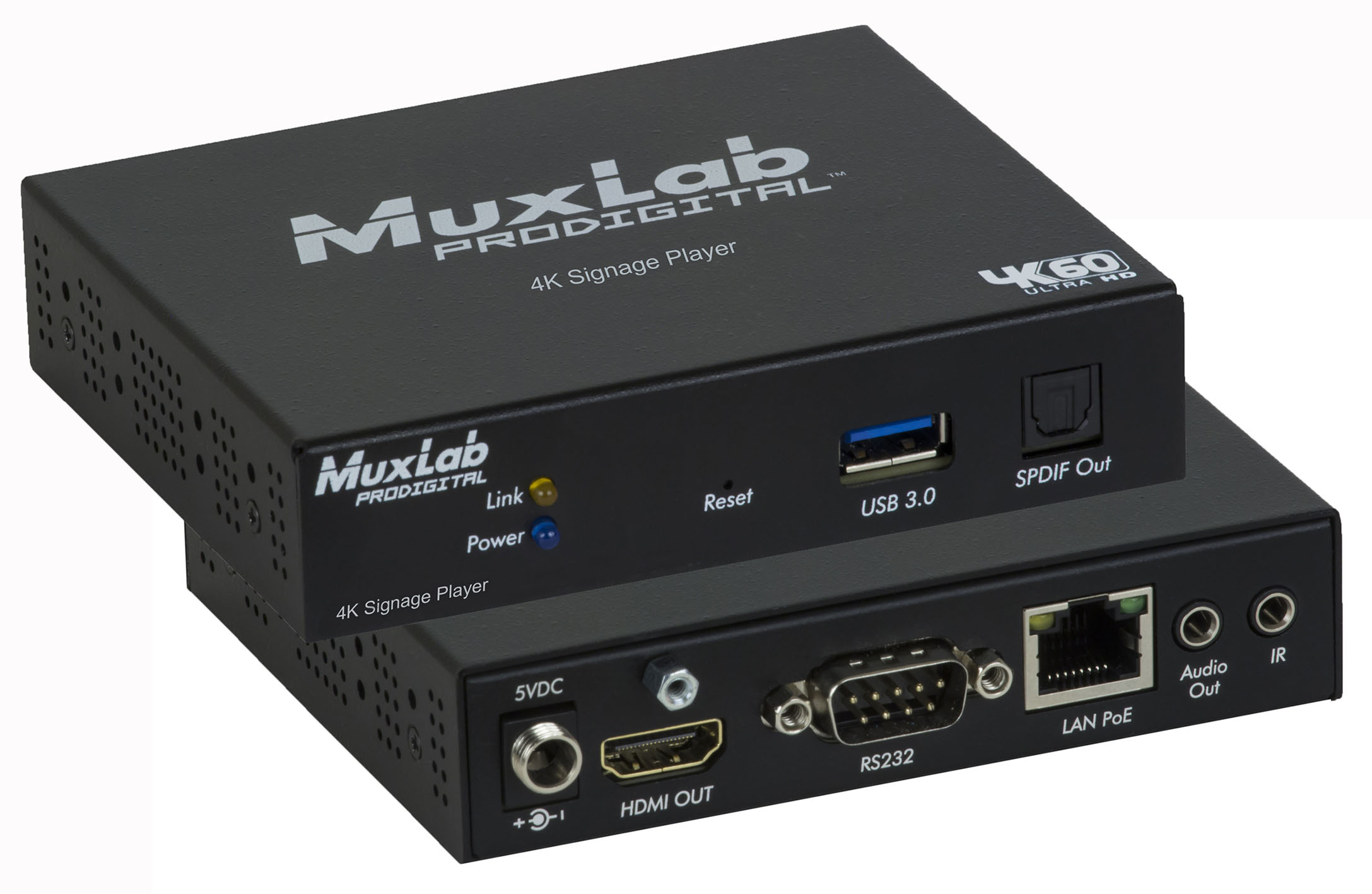 Le lecteur multimédia HDMI 2.0 Digital Signage est capable de recevoir simultanément plusieurs contenus AV H.264/H.265 jusqu’à 4K/60 (4:4:4) depuis un réseau local, Internet, la mémoire interne ou des périphériques USB externes, et prend en charge la capacité multiview et la planification pour livrer automatiquement ce contenu AV fenêtré personnalisé selon un planning hebdomadaire. Plusieurs formats de fichiers vidéo, audio et image sont pris en charge. Il est capable de mettre à l’échelle 1080p@60Hz vidéo en 4K@60Hz (4:4:4) et de livrer du contenu vers un écran ou un autre émetteur pour supporter des configurations de matrice virtuelle et de mur vidéo.