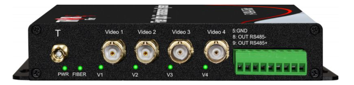 Kit émetteur-récepteur F-4V8A-1D-TxRx - 4 sorties vidéo CVBS + 8 sorties audio unidirectionnelles asymétriques + transmission de données RS485 inversée sur fibre optique