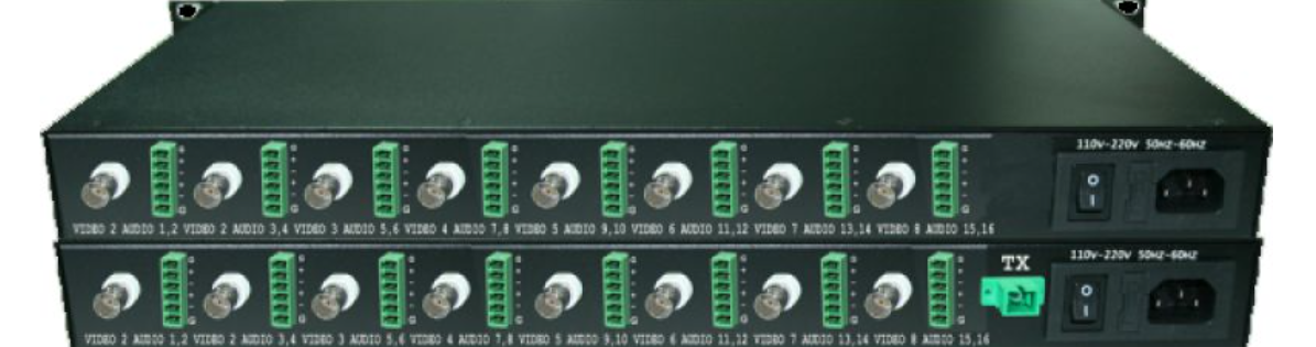 Émetteur fibre multimode 16 canaux vidéo et 32 canaux audio pour une portée de 2 km |