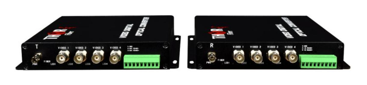 Émetteur et récepteur vidéo composite à 4 canaux Thor Fiber pour un transport facile de toutes vos vidéos sur une fibre monomode (20 km) ou multimode (3000 pieds).