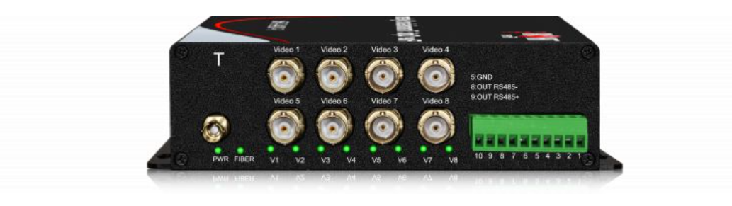 Le H-8HD-TVI-1D-TX/RX transmet 8 signaux TVI de l'émetteur au récepteur et 1 donnée de contrôle RS485 du récepteur à l'émetteur sur une seule fibre optique.