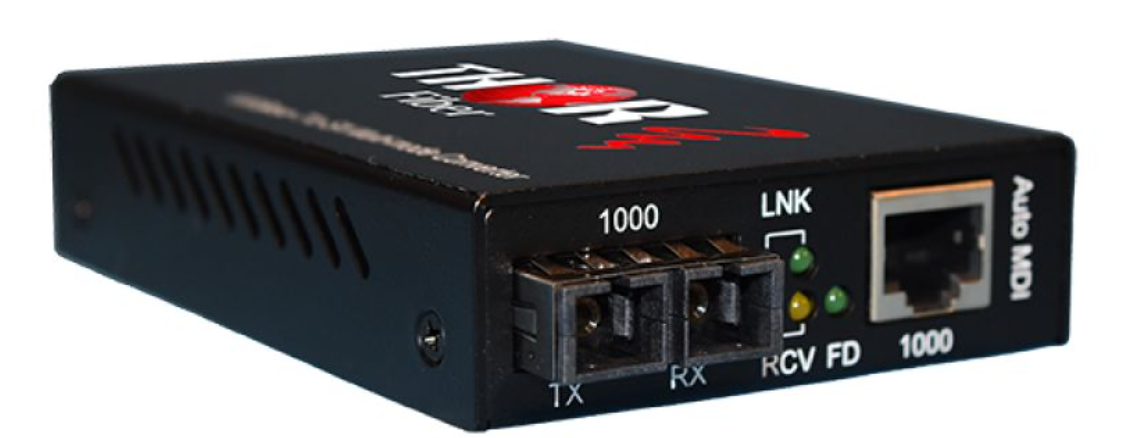 Les convertisseurs de média Thor Fiber F-GET-TR ont été spécialement conçus pour faciliter la migration des réseaux Gigabit Ethernet cuivre vers le Gigabit Ethernet fibre optique. Désormais, la migration ou l'extension des réseaux existants est possible à moindre coût et avec une complexité réduite. Ces convertisseurs Thor sont totalement transparents lors de leur installation : votre réseau fonctionne exactement comme avant, tout en prenant en charge les supports cuivre et fibre optique. Cette flexibilité de câblage permet aux administrateurs réseau de déployer les câbles à fibre optique n'importe où au sein du réseau sans modifier la configuration des segments Gigabit cuivre. Leur format compact permet une installation aisée sur un bureau, même dans les espaces les plus restreints, ou une fixation murale pour un gain de place optimal. Plusieurs convertisseurs peuvent être installés simultanément grâce au châssis rackable 19 pouces F-CHAS à 12 emplacements. Le F-GET-TR exploite la technologie Gigabit Ethernet, idéale pour les applications de transmission à large bande passante telles que la vidéo, l'image et la voix sur IP.