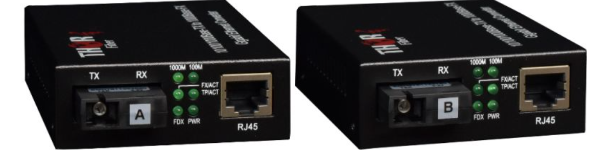 Les nouveaux convertisseurs Gigabit et Fast Ethernet de Thor Fiber permettent désormais d'utiliser une seule fibre pour des conversions Ethernet full duplex sur fibre optique. Grâce à une technologie de transmission fibre avancée, Thor prend en charge la transmission et la réception simultanées de toutes les données en full duplex sur une seule fibre, multimode ou monomode. Cela se traduit par moins de câblage, plus de fibres disponibles, des coûts réduits pour les nouveaux projets et un câblage simplifié permettant de transmettre des données bidirectionnelles Gigabit sur une fibre à l'aide d'un connecteur SC/PC simplex. Chaque modèle est identifié par la lettre A ou B ; les deux sont nécessaires pour constituer un ensemble. Il est impossible de connecter deux modèles A ou deux modèles B ensemble. En créant le système des modèles A et B, nous pouvons désormais utiliser deux longueurs d'onde, 1310 nm pour l'émission et 1550 nm pour la réception, en environnement full duplex sur une seule fibre.