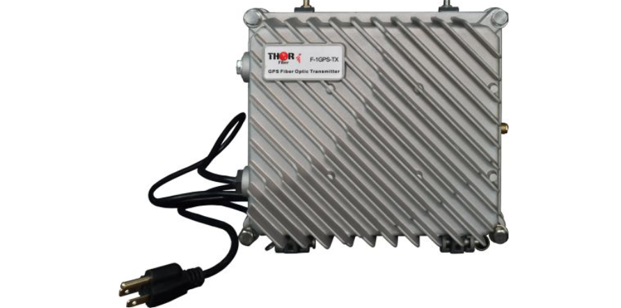 Le kit GPS sur fibre optique Thor Fiber pour conditions météorologiques extérieures permet d'envoyer un signal GPS sur de longues distances pour la synchronisation des stations de base cellulaires.