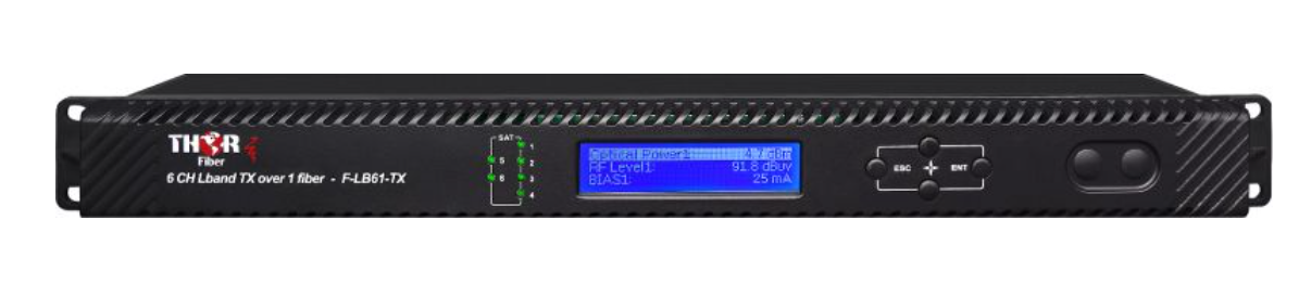 Le système F-LB61-DWDM de Thor Broadcast est conçu pour acheminer six signaux coaxiaux indépendants provenant d'antennes satellites via un câble à fibre optique. Ces systèmes sont similaires aux systèmes LB61 standard de Thor, mais intègrent une optique laser améliorée, compatible avec les amplificateurs optiques EDFA. Les émetteurs à fibre optique en bande L permettent de s'affranchir des limitations de distance des câbles coaxiaux dans les systèmes de télévision par satellite. Outre la diffusion de la télévision par satellite, les systèmes de type DWDM peuvent également être utilisés pour fournir des services Internet ou de données sur la même fibre. Ceci permet la mise en place de services triple play sur un seul brin de fibre optique.