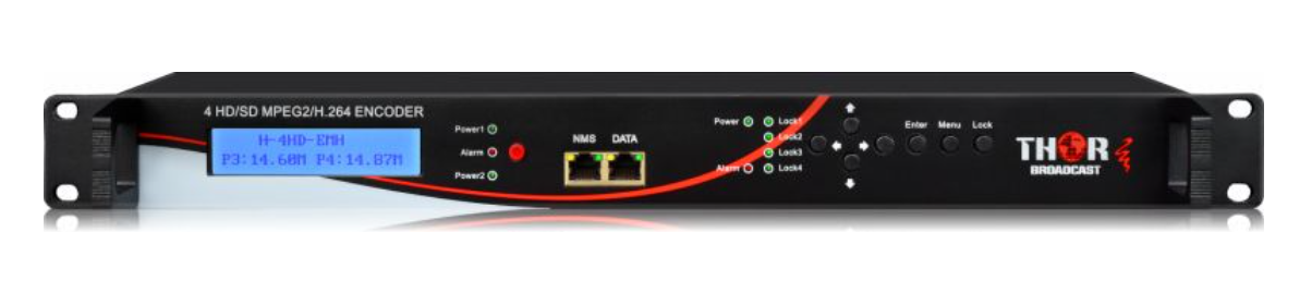 Conçus comme encodeurs complémentaires pour la populaire série de modulateurs QAM-IP, les encodeurs de programmes HD Thor H-4HD-EMS acceptent jusqu'à 4 canaux de vidéo numérique HD-SDI non compressée sur 4 connecteurs BNC. Gérables via n'importe quel navigateur web moderne, chaque encodeur permet un réglage indépendant du débit binaire, des codecs et de la qualité d'image. La prise en charge du codec MPEG-2 et de l'audio Dolby AC/3 garantit la compatibilité des programmes générés avec la quasi-totalité des téléviseurs aux États-Unis. Les quatre flux de programmes sont multiplexés en une sortie ASI MPTS sur des bornes BNC en miroir. Cette sortie ASI peut être connectée directement à l'entrée ASI d'un modulateur de canaux TV numériques QAM-IP. Il est ainsi possible d'ajouter des programmes supplémentaires aux canaux de sortie QAM-IP sous forme de canaux « virtuels » ou « sous-canaux ». Sur un téléviseur, ces canaux apparaissent comme les canaux 2.1, 2.2, etc. Chaque canal numérique peut diffuser jusqu'à 20 programmes, selon la résolution et le débit binaire d'encodage. Outre la sortie ASI, les flux de programme sont également disponibles sous forme de flux de transport vidéo réseau UDP ou RTP. Cette sortie est entièrement conforme aux normes IGMP Multicast UDP MPEG-TS et peut être facilement intégrée à la quasi-totalité des systèmes IPTV. Le flux est dans un format universellement compatible et peut être visualisé aisément dans des applications clientes telles que VLC. En plus de la gestion réseau via un port Ethernet NMS dédié, tous les paramètres et éléments de configuration du menu sont facilement accessibles et modifiables depuis l'écran LCD et le clavier en façade. Des LED sont également prévues pour la surveillance des alarmes et la détection du signal vidéo entrant.
