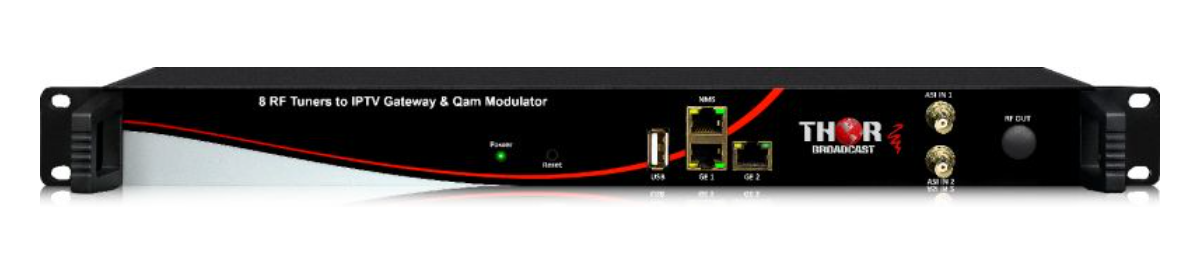 Cette passerelle et transmodulateur est un appareil unique capable de convertir facilement les flux RF existants (jusqu'à 8 fréquences) en canaux IP et RF. Vous pouvez ainsi ajouter n'importe quel flux RF à votre réseau de canaux RF existant et créer des flux IP pour un accès simplifié via un réseau local (LAN). Par exemple, vous pouvez convertir le DVB-T en IP et QAM, ou l'ATSC en IP et QAM, ou encore l'utiliser comme traducteur pour convertir 8 fréquences QAM en IP et 8 QAM (sur des fréquences différentes, si vous souhaitez réorganiser votre grille de chaînes). Grâce à sa grande variété d'options, cet appareil est idéal pour optimiser rapidement et efficacement votre infrastructure réseau, ajouter des chaînes TNT gratuites à une infrastructure QAM ou simplement créer une passerelle RF vers IP avec vos programmes RF existants. Il s'agit du même appareil que celui mentionné précédemment, avec en plus la transmodulation. Nous pouvons combiner quasiment tous les flux RF entre eux, à quelques exceptions près. Pour plus d'informations, veuillez contacter votre revendeur local ou Thor directement.