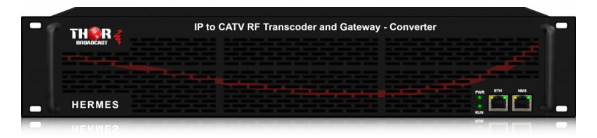 L'Hermes 64 est un transcodeur MPEG intégrant un modulateur RF CATV pour simplifier l'encodage, la modulation et la distribution des signaux. Le format d'encodage vidéo le plus répandu au monde est le H.264, grâce à son efficacité ; il est utilisé pour les transmissions vidéo IP et par satellite. Cependant, aux États-Unis, au Canada et au Mexique, la norme d'encodage utilisée pour le transport de la vidéo avec modulation RF QAM CATV ou modulation hors-antenne est en réalité le MPEG2 avec audio Dolby AC3. La plupart des tuners TV achetés dans ces pays ne sont pas compatibles avec les signaux RF H.264. C'est pourquoi l'Hermes 64 permet de recevoir les flux IP H.264, largement utilisés, de les transcoder au format MPEG2 et de les moduler sur les canaux J.32B QAM afin que les téléviseurs américains, canadiens et mexicains puissent les afficher, résolvant ainsi les problèmes de distribution courants. Son application principale consiste à recevoir des flux IP provenant de fournisseurs de télévision par satellite ou IPTV via la passerelle satellite COM3000 et à les convertir au standard américain MPEG2. Le débit binaire transcodé est réglable de 1 à 19 Mbit/s. Après encodage et multiplexage, l'appareil module les signaux selon les normes DVB-T/T2, DVB-C, ATSC et ISDB. Grâce à son port d'entrée IP en façade, il peut recevoir un signal IP et générer un signal RF, ce qui en fait un appareil polyvalent adapté aux applications à grande échelle.