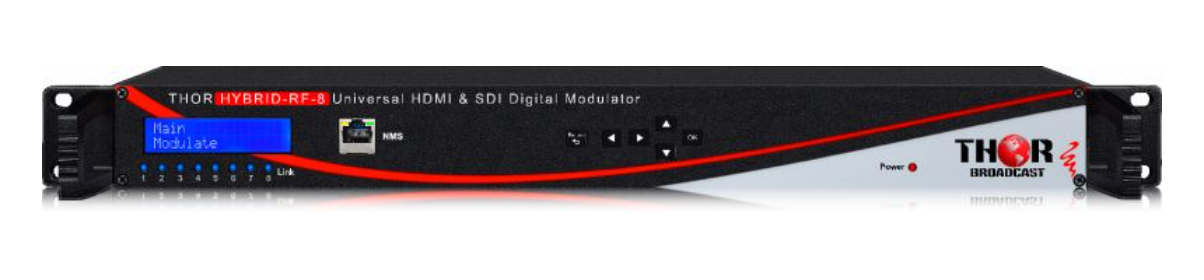 Chaque canal peut être sélectionné individuellement comme entrée SDI ou HDMI, et la commutation peut être effectuée instantanément via les boutons du panneau avant ou l'interface Web propriétaire et dynamique de Thor. Chacun des 8 canaux de sortie RF peut être configuré indépendamment en termes de fréquence et de norme de modulation . Par exemple, il est possible de connecter 4 canaux SDI en sortie ATSC, puis 4 canaux HDMI en sortie QAM. Cette flexibilité inédite sur le marché ouvre la voie à une nouvelle génération de normes pour les produits de modulation d'encodeurs.