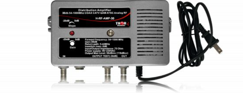 Cet amplificateur constitue un excellent amplificateur de distribution pour les réseaux MDU à forte charge et les systèmes CATV et SMATV à large bande. Grâce à son facteur de bruit extrêmement faible et à sa faible distorsion, le H-RF-AMP-30 est parfaitement adapté aux grands réseaux nécessitant une mise en cascade des amplificateurs.