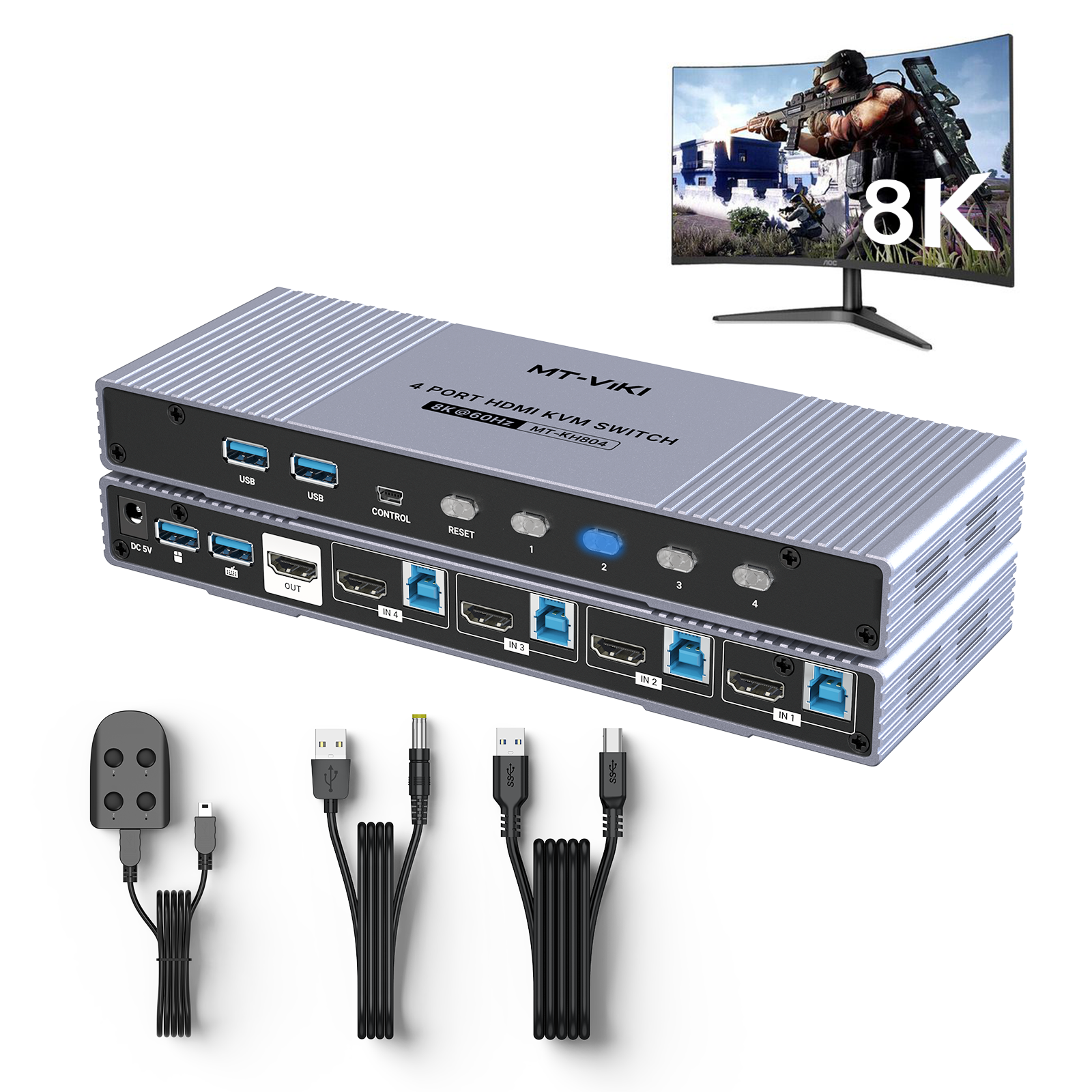 2. Interface : 4 entrées HDMI, 1 sortie HDMI et 4 ports USB 3.0 ;