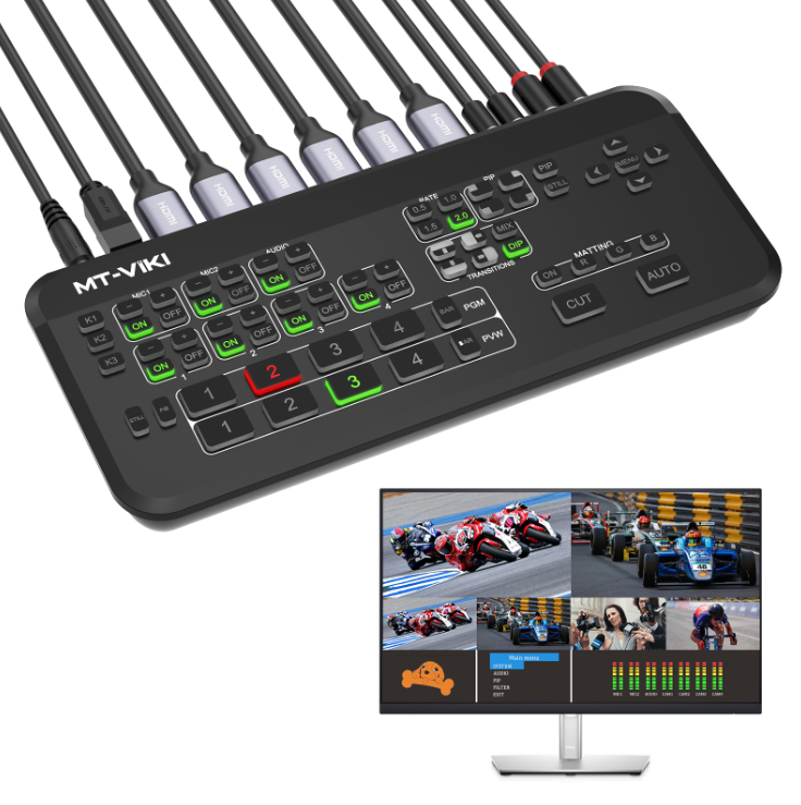 Les mélangeurs MT-VIKI HDMI Live Stream facilitent la création de productions professionnelles multi-caméras pour la diffusion en direct sur YouTube et des présentations professionnelles innovantes à l'aide de Skype ou Zoom !