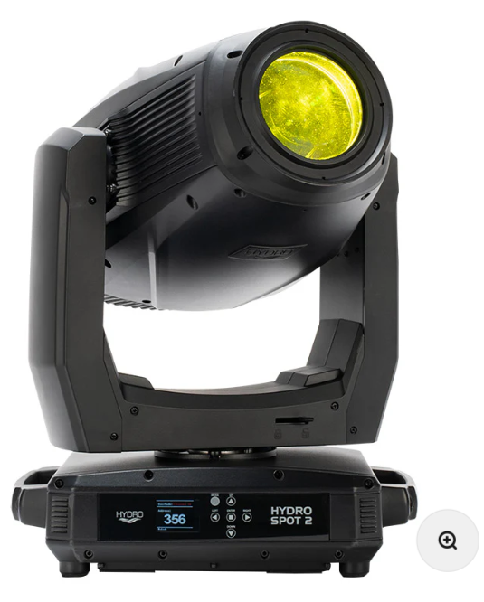 Hydro Spot 2 is an IP65-rated professional moving head luminaire powered by a potent 320-Watt cool white LED engine. It offers an impressive 15,000 lumen output while featuring a wide variety of beam shaping tools to provide lighting designers with almost limitless creative potential. Its features include motorized zoom (8 to 41-degrees) and focus; two frost filters; CMY color mixing, variable CTO flag and independent color wheel; two GOBO wheels (one fixed, one rotating and replaceable); two rotating prisms (6-facet circular and 5-facet linear); and an animation wheel.