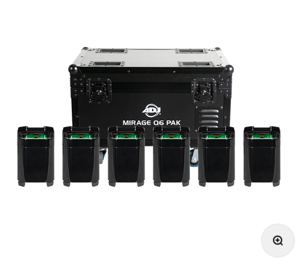 The ADJ Lighting Mirage Q6 Pak Black is an all-in-one event up lighting system with six (6) IP65 rated, for outdoor or indoor use, battery powered fixtures in a durable flight case with an on-board battery charging solution.