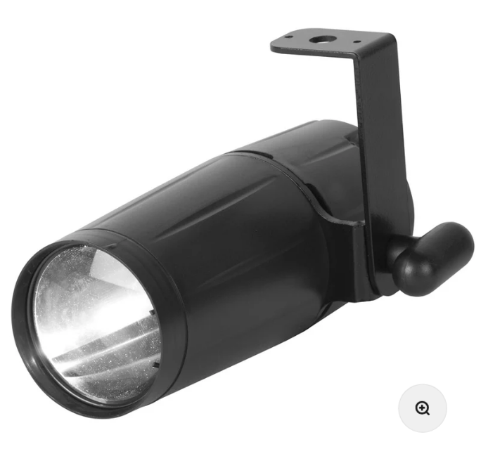 - Bright 3W white (6000K) LED Pinspot with 3-degree beam angle