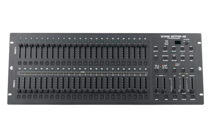 ADJ's Scene Setter is a 48 Channel Dimming Console for the purpose of managing the levels of your conventional light entertainment system. With lots of built-in, reprogrammable scenes and chases, you can quickly and easily create and manage your light show. This portable control system is perfect for live entertainment stages, mobile DJ's, clubs, bars or for any professional event that requires conventional dimming control of 48 channels or less.