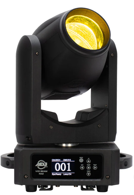 The ADJ Lighting Vizi Beam RX2 is a compact, high-performance moving head beam fixture that features a 100W Osram Sirius HRI discharge lamp, a razor-sharp 2-degree beam, two prism effects, and a host of high-performance features for the modern lighting professional.