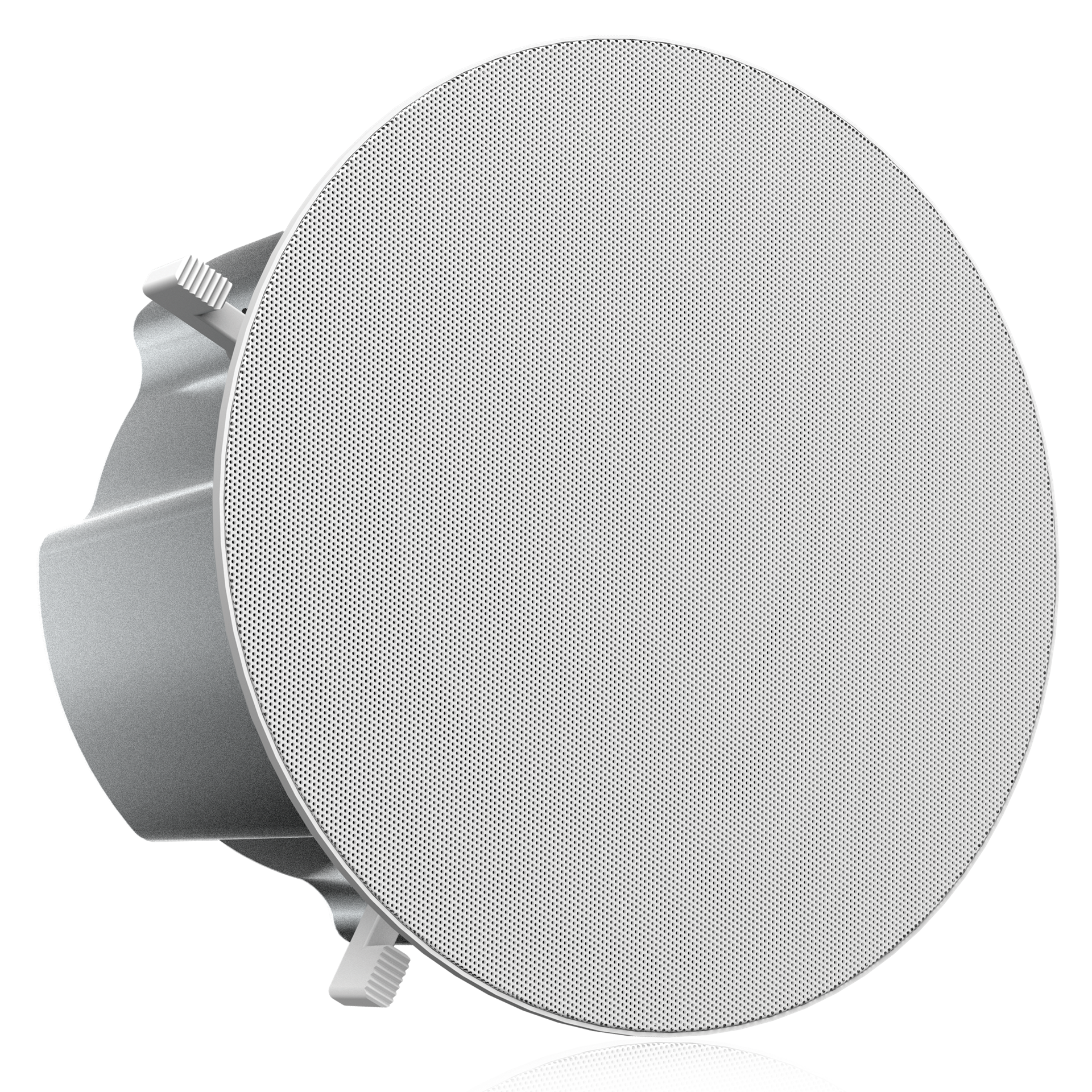 High quality construction includes a high efficiency paper composite woofer with rubber surround and a 20mm coaxially mounted silk dome tweeter. The high sensitivity of the speaker means less power may be required to achieve the desired SPL. The speakers are factory assembled to an optimally tuned & ported deep drawn enclosure and include a specially designed low saturation 70.7V/100V transformer. A convenient front mounted switch allows tap selection without the need to remove the speaker from the ceiling. A detachable Phoenix style, locking four-pole connector provides for easy daisy chain wiring to other full range speakers or subwoofers. Attractive low profile press-fit grille blends seamlessly into contemporary architecture.