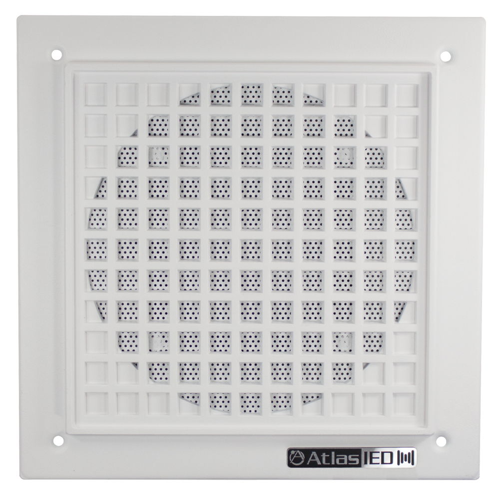 All AtlasIED IP speakers consist of a factory assembled speaker, grill, and PCB amp/control board that is securely mounted to the rear of the grill.