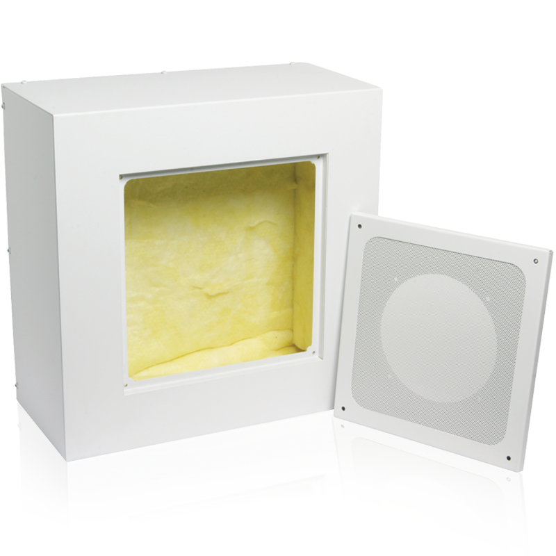 Convenient assembly is 1-1/2 cu. ft. with 1/2" thick fiber board. Package includes above specifications and premounted baffle (included) is recessed into the enclosure for flush appearance. Back plate is removable for installation ease. Finish is textured white epoxy.