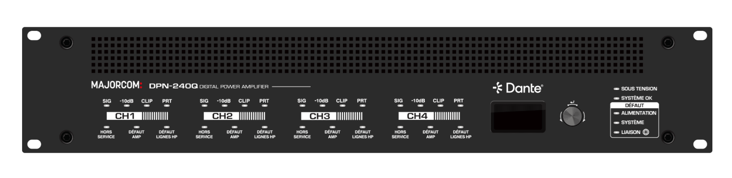 Puissance | 4 x 240 W RMS @ 70 V/100 V Classe D Charge Min 41.6 Ω, Capacitée Min 0.01uF |