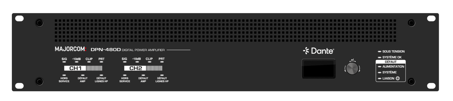 Puissance | 2 x 480 W RMS @ 70 V/100 V Classe D Charge Min 41.6 Ω, Capacitée Min 0.01uF |