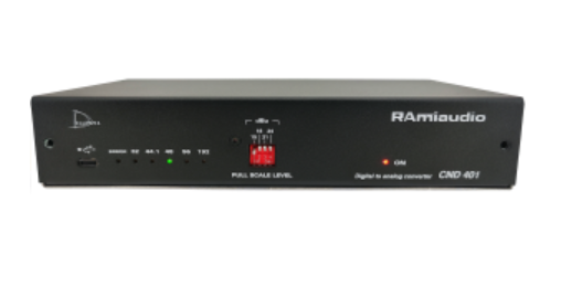 Le CND401 est un convertisseur numérique/analogique (format " Slimrack") permettant la conversion de signaux digitaux ayant une résolution de 16 à 24 bits et une fréquence d'échantillonnage comprise entre 32KHz et 192KHz.