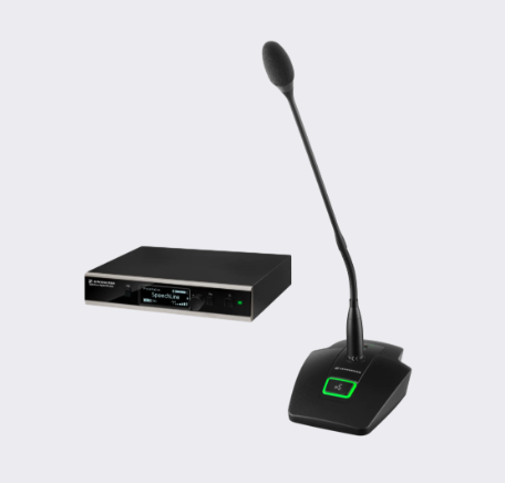 L'ensemble SL TS 133 GN Set DW de la série SpeechLine Digital Wireless comprend le socle de table SL 133-S DW, le microphone à col de cygne MEG 14-40 B, le récepteur SL Rack Receiver DW et tout le nécessaire pour son installation et son utilisation.