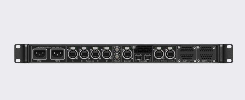 La Spectera Base Station est un rack 1U qui fournit jusqu’à 64 canaux (32 d'entrée/32 de sortie) et utilise jusqu’à deux porteuses RF large bande pour héberger toutes les transmissions sans fil de l’unité.