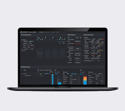 - Visibilité du volume des retours in-ear, de la latence, des niveaux et paramètres du son, de l’état RF, du chargement de la batterie, etc.