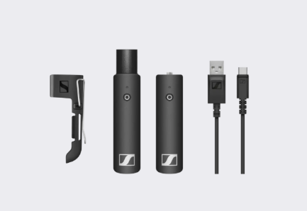 Système XS Wireless Digital pour présentation. Système audio sans fil à bouton unique avec émetteur XSW-D 3,5 mm, récepteur XSW-D XLR mâle, clip ceinture et câble de chargement USB-A vers USB-C