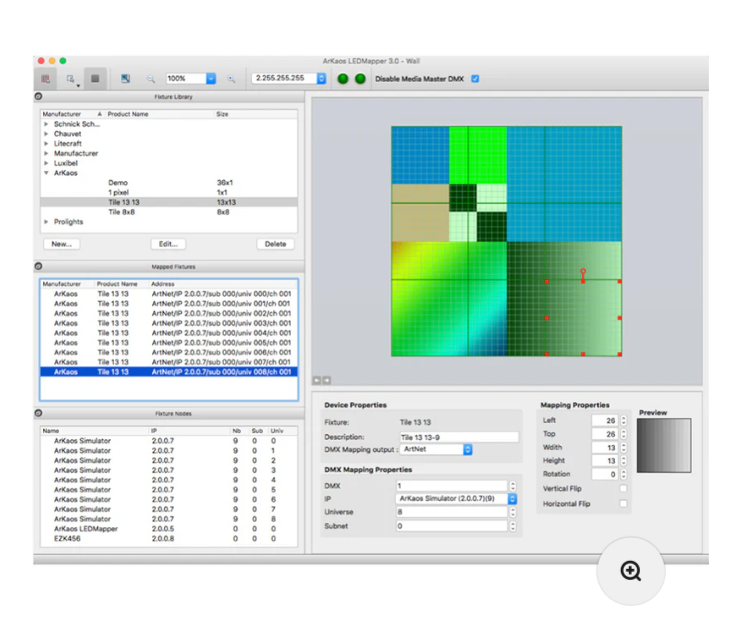 - Control video layers with just a few DMX dimmers or MIDI notes