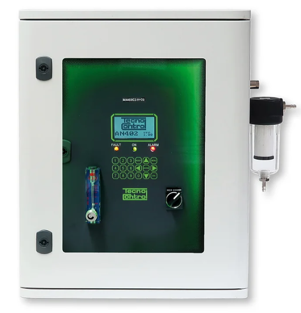 Le circuit d'analyse des gaz en chambre de combustion de l'AN 400/I comprend un filtre à coalescence, une pompe d'aspiration, une électrovanne à 3 voies, un débitmètre et la sonde pour gaz explosifs. La sonde utilisée est de type à "combustion catalytique" et se trouve logée dans un filtre en métal fritté antidéflagrant certifié CESI Ex-d-IIC-T6.