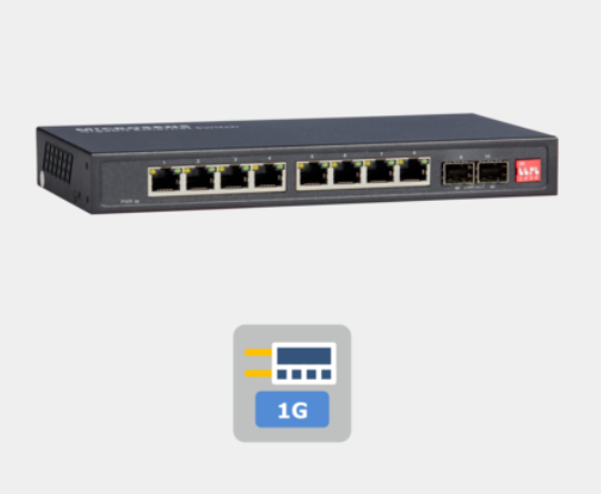 - Gigabit Ethernet Desktop Switch 10-port with 8x 10/100/1000Base-T and two SFP slots