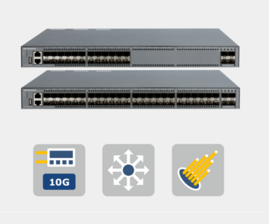 - 28-port switch with 4x 1G/10G fiber optic SFP+ slots and 24x 100M/1G SFP slots, of which 4x 10/100/1000Base-T Combo